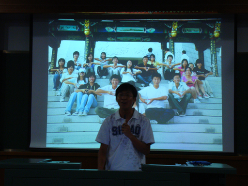 介绍完到场嘉宾后,主持人分别邀请学生会、团总支代表回顾这一学年来的工作。首先是学生会代表周毓赟,回顾了学生会各个部门一年中举办的活动,最初办公室举办的军训征文比赛,学术部举行的辩论赛、话剧比赛等充满学术性的活动,文体部带来欢乐气息的迎新、圣诞晚会,宣传的设计,外联为活动忙碌奔波,女生部贴心的女生节活动……毓赟学姐肯定所有部门在一年中成功的举办了许多活动,同时提议每次活动后都要做好总结,扬长避短,保留好的经验与传统,改善不足之处,这样才能把今后的活动越办越好。团总支代表刘必铮说时刻保持着一颗爱心,温暖的心,以“一年时光”为线,总的介绍了这一年来团总支各个部门联合分工举办的活动,经历过迎接与慰问新生,到过爱欣敬老院,见证团总支第一个生日,举行过两大特色活动月——“国际文化交流月”和“我们的青春”活动月,还有和团活动息息相关的“两优一先”评选等等令人难忘的活动。必铮学长对于我们的组织,我们的活动以及我们分别提出自己的看法,并对未来我们举办团总支的活动报以期望。
