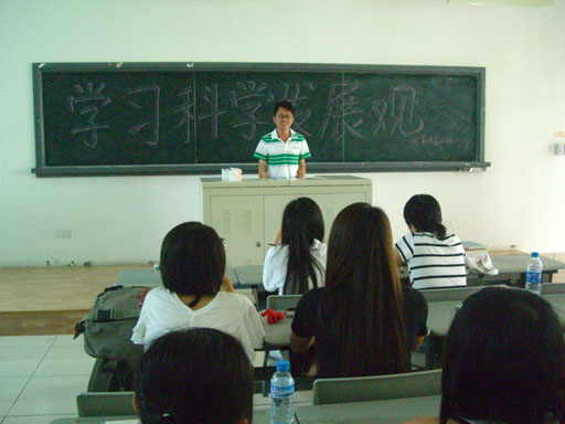 为了响应我系党支部深入学习实践科学发展观的活动,加强支部成员对科学发展观的了解,以及提高理论联系实际的能力,英语系06级(2)班团支部于2009年6月12日在公一#118举行了学习科学发展观的学习活动。本次活动由团支书张思娜同学主持。