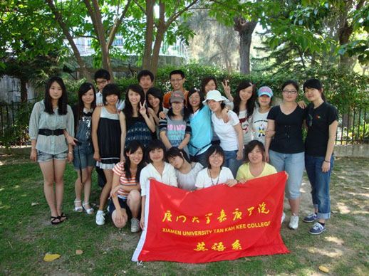 吃饱喝足后大家的精神又饱满起来,喧闹着玩起各种游戏。一大群人聚一块儿闭着眼胡乱抓手,然后再把这错综复杂的节慢慢解开,异常兴奋;扑克一张张分下来,杀人游戏玩得不亦乐乎。最后休憩期间,大家相聚在榕树下,英语系07(5)班鲜红的班旗铺开了,在相机前摆弄各种令人捧腹的姿势。欢快的笑声随着海风吹遍鼓浪屿,开心的笑容定格在照片里,这将成为一颗颗璀璨的明珠在我们的记忆里闪闪发光。