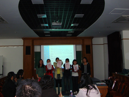 课上,同学们上演了一场场精彩绝伦的汇报演出。同学们以小组的形式并结合PPT精心创作编排了如情景短剧、自拍视频、小品、诗朗诵、演唱歌曲等各式内容丰富、有趣的节目。在短短的两个多小时内,同学们以其独特的表演方式表达了自身对三场团课的心得体会并结合政治时事及身边小事通过一系列的人物扮演反映出当代中国的社会现象。在一阵阵的欢笑声与掌声中,同学们以大胆且富有创意的演出征服了在场的评委和观众。