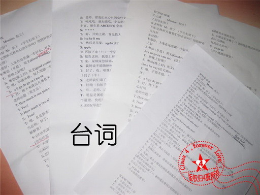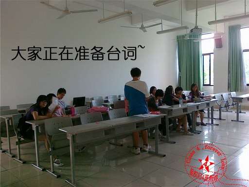 5、6节课的时候,4班团支部同学早早的来到了公1#105教室。玲华同学主持,开始了情景剧的排练。排练的最初,每每顺着剧本才子刘鹭同学写的搞笑台词往下演的时候,大家都会笑得不可开支……难忘于峥嵘的出色扮演,大方展现农村学前教育班级的师资;难忘于各种语言的“早上好”,欣喜于听到自己二外课上的问好;难忘于异口同声的“连城地瓜干”,坚决让理论派上了用场。