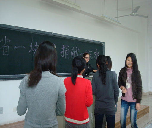 捐款活动在写作课前紧凑的开展了。处在沿海地带的我们,可以说没饱受过干旱之苦,看到电视、报纸、网络等新闻上报到了西南干旱的严重受灾情况后,大家都觉得有义务贡献出自己的微薄力量。因此,支部成员都积极参与到此次活动中,拿出自己的零花钱,奉献自己小小的一片爱心,希望能帮助到那些需要帮助的人。
