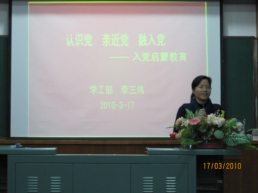 在团总支“服务学院中心,服务团员青年”的宗旨下,为培养新一批党的助手和接班人,3月17日晚7点,英语系和计算机科学与技术系的第一期团基本知识学习在公一#208举行。出席这次团校开学仪式的有学工部部长