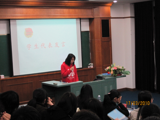 由英语系林洁同学与计算机科学与技术系林伟东同学作为学生代表上台发言。他们以自己的激情调动了现场的氛围,并希望同学们通过此次团课学习积累经验、拓宽视野。
