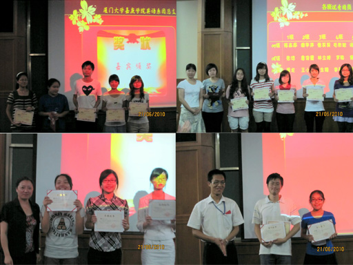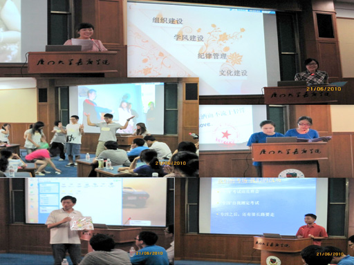 为了更好地发挥团组织和青年团的先锋模范作用,加强团组织建设,进一步调动团组织工作的积极性、主动性和创造性,推进我系共青团工作的稳步发展,英语系团总支于6月21日中午12:30在人文B#301对一年来在我系共青团中有突出成绩的团员,团支书,团支部(即“两优一先”)进行表彰。此次“两优一先”的评选活动还新增评两个奖项:最佳组织奖,最佳人气奖。