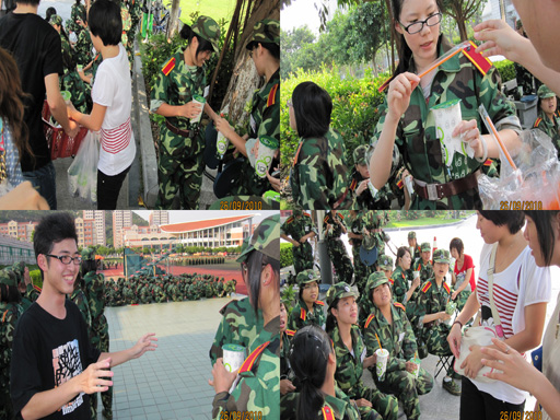在递送爱心绿茶的同时,团总支的各干部还与新生们进行了关于军训及学习生活等话题的短暂交流,并给新生们加油打气,鼓励他们不畏艰难、坚持到底!