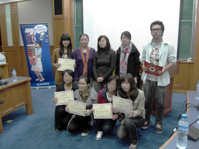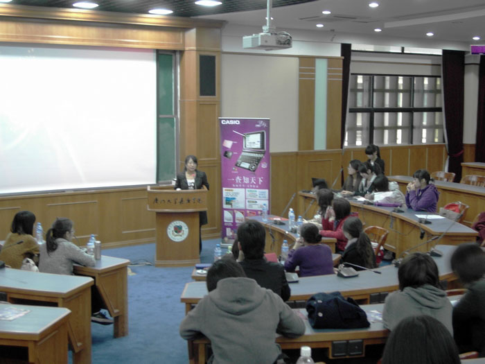 首先由主持人介绍了到场嘉宾,分别是英语系执行主任杨昆老师、卡西欧公司的中村课长以及卡西欧厦门代理商刘建斌代理。