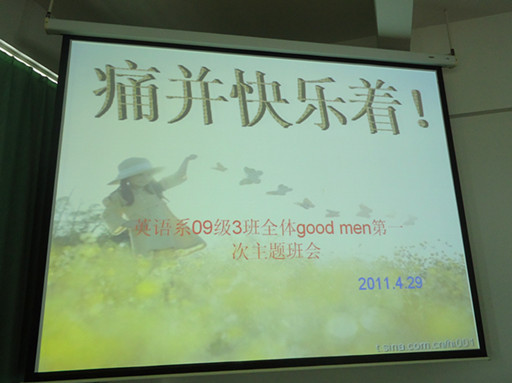 对于专四2个月的努力拼搏,对于许多同学而言,在4月16日10:45分那一刻换来的却是失望或是落寞;且随之而来的又是让大家疲惫不堪的期中考。或许流过泪,或许想过放弃,但不管怎样,我们依然要在痛苦中继续着我们的快乐!为此,4月29日的早上,英语系09级3班团支部在公一404展开了他们在历经痛苦后的快乐之旅。