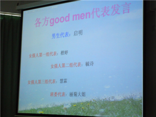 到讲台上演讲只是单方面的互动,而彼此之间的感情总是在团结合作中不断地加深。由此班会进行到了第二部分:“自high”与“互high”。班长彭启明同学,郑靖岚和崔婕同学等分别为同学们献上了他们精心准备的各种表演,为大家带来了视觉和听觉上的享受。而接下来的游戏时间也把班会推向了高潮。彼此间的合作,彼此间的默契,在这样一个环节中体现地淋漓尽致。不管是赢了,还是输了要接受惩罚,每个人脸上都洋溢着快乐!最后,班会在一首“至少还有你”中慢慢接近尾声。