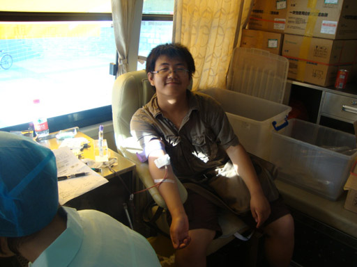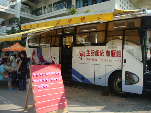 年11月4日中午,骄阳似火,厦门大学嘉庚学院的南区食堂人头拥簇。由厦门大学嘉庚学院英语系学生党支部及厦门大学嘉庚学院英语系团总支联合举办的无偿献血活动如火如荼的开展。两辆采血车静静地停在一起,志愿者和各个工作人员从早上8:00便在此忙碌,中午是献血人群最多的时候,一到放学时间,献血的地点便热闹了起来,前来义务献血的人们络绎不绝,但一切都显得秩序井然。现在大家正在积极指导全院各系的同学们认真填写献血者健康情况征询表,在工作人员的引导下,献血者们进行了填表、量血压、验血等一系列抽血前的准备工作。在献血的过程中,献血者们大都显得十分轻松,面带微笑,仔细的听着医生们交代的注意事项,更多的是,享受着那份帮助别人、挽救他人生命的快乐。一位10级英语系的潘同学在献血后说感到特别开心,很有意义。另一位11级财政金融系的刘同学说,虽然这是他第一次献血,但是他一点也不紧张。因为他觉得献血不但对身体有益,而且他也想为这个社会做点什么。采血的医生建议大家在献血后不要吃太油腻的东西,最好是吃点鱼和动物肝脏,这样可以促进造血功能。