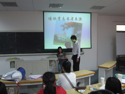 随后,本次班会组织者邀请到10级英语系同学现在自愿者表演,真实展现本月上旬由漳州开发区举办的国际会议中的精彩表现。接着由来至一、三、四班的三位男生合唱了一曲《鼓浪屿之波》,用优美的歌声表达了对于海西建设的独特情歌,将此次班会推向高潮。在座同学都热情鼓舞,主持人趁机采访了来自福建各个地区的同学,分享海西建设的重大变化, 同学们纷纷表示将努力学习自己的专业知识,以积极地姿态投身到海峡西岸的建设中。