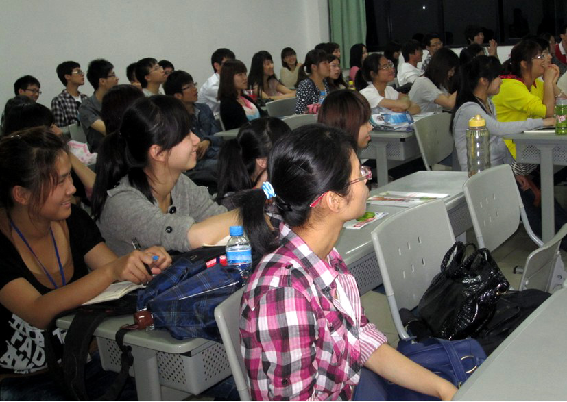 为更好的明确新东方的招聘目标、入职流程以及生活待遇等,曾任厦门大学嘉庚学院英语系第二届学生会主席的何晓婷和即将毕业的2007级英语系学生宋佳鑫分别分享了自己同新东方的不解之缘。何晓婷认为在新东方从培训到就职是个艰苦且有重大意义的过程,她之所以选择新东方正是因为自己拥有不懈拼搏,不断进取的精神,而这正与新东方精神不谋而合。宋佳鑫则表示她十分幸运,从培训到入职并没有太大挫折但却收获颇丰。两位嘉庚学子的以自己的就业经历告诉在场同学:能力有多大,新东方给你的舞台就有多大。