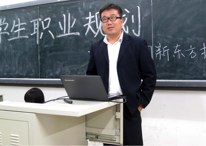 经过刘烁炀校长的一番发言,现场气氛逐渐轻松活跃,同学们对职业的定位有了初步的认知。接着便由高考语文教研组组长、首席讲师马军老师继续为同学们作宣讲。马军老师认为想在一个团队出类拔萃作重要的便是明确自己在团队中的定位。他用《西游记》中唐僧师徒的事例阐述了为了使团队更好地运作师徒四人皆不可或缺的观点。随后,他又向同学们介绍了新东方集团发展的基本概况与历程,并对有意成为新东方大家族成员的应聘者们提出了四点要求:奋斗、优秀、理想和专业。