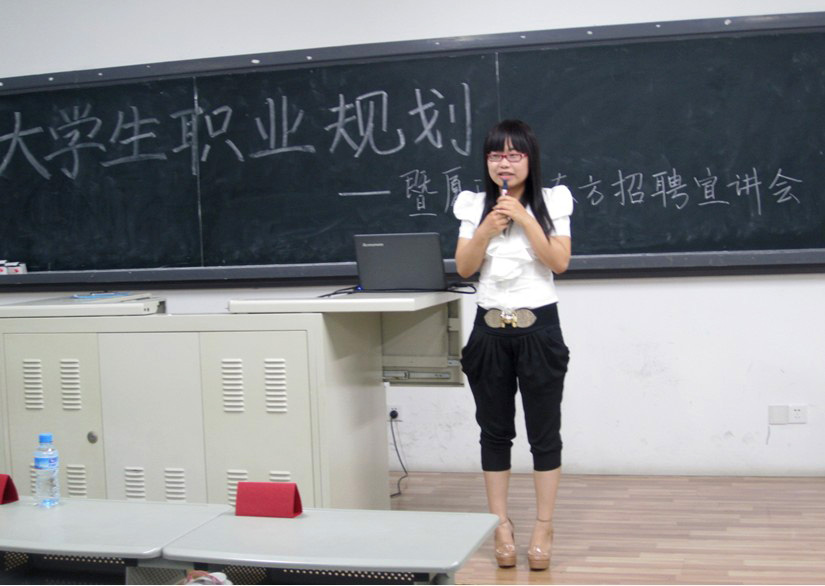 首先,由厦门新东方学校校长刘烁炀作开场讲话。讲话中,他与在座的同学分享了自己在新东方艰苦打拼的九年历程,并指出新东方旨在培养有爱心、有能力、有责任感的优秀教师。他还以多年的工作经验告诉即将踏入职场的大四学生们找工作的三大维度,即行业、领导与团队。他认为高能力的人才才能赢得高工资,一位好的领导的责任便在于提升员工的价值并带领整个团队始终保持积极向上的精神状态。