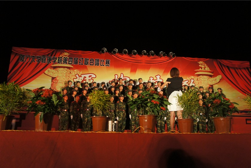 本次比赛中英语系虽然没有夺得任何奖项,但是我们确实是唱出了水平,赛出了风度。练习红歌的时候由于歌曲难度较大,同学们被分为两个声部。而对音乐一窍不通的男生们硬是学会了唱“低声部”,从一开始的声音参差不齐,到后来的洪亮有加,所有这一切努力都被大家记在心里。