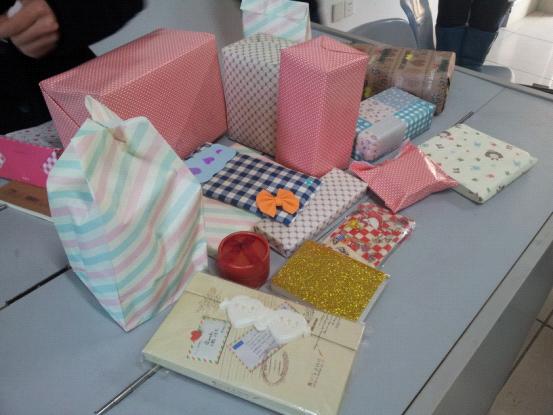 今年的圣诞节,我们班举行了交换礼物的活动。精心挑选的礼物,摆在桌上。大家轮流抽签,抽签的与被抽签到的同学进行礼物交换。礼物丰富多样。有书签,有食物,有视频。种类丰富多样。最巧的是班级仅有的两个男生,居然相互抽中。乐的全班同学笑声不断。不禁感叹缘分和巧合是那么的有趣。