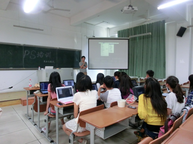 2012年10月15日 中午12:30由厦门大学嘉庚学院英语系团总支宣传部举办的PS培训活动在主四#410开展。此次活动我们请到管理系杨奇睿学长为部员进行培训。出席本次活动的有英语系团总支书记陈幼兰,英语系团总支宣传部部长付金婉。