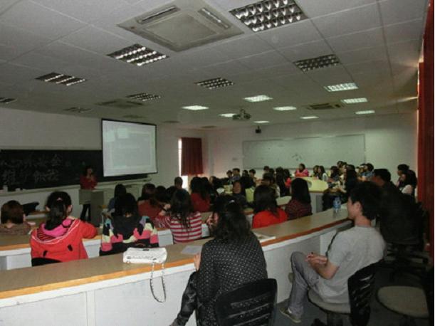 2012年3月28日下午14:40分,在经管#309由英语系2011级一班二班召开题为“心系安全 维护你我”的安全主题班会。出席此次活动的有英语系行政秘书兼辅导员李婧老师,学工部赵文正老师,以及财政金融系和国际贸易系的学生代表。