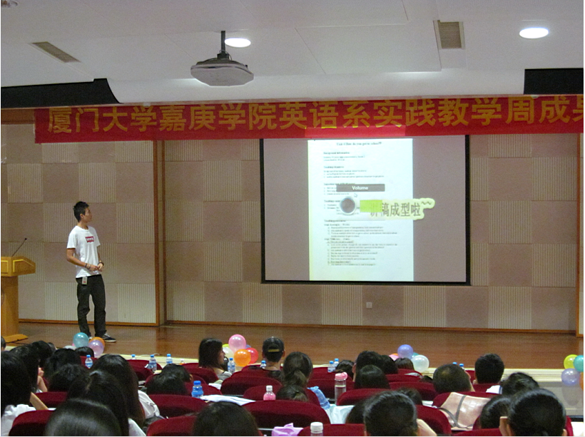 7月19日上午9:00,英语系实践教学周成果汇报展示会在主3小报告厅举行。此次展示会是对两周的实践教学的总结,也是同学们辛勤努力的最好的见证。英语系执行主任杨昆老师,英语系辅导员兼行政秘书陈毅超、李婧老师,以及英语系黄卓静老师、孙佳妮老师、郑宇帆老师、陈智淦老师、孙艳老师、高仁仁老师、黄丽香老师、卓文如老师、王淑娥老师都纷纷到场支持此次活动。
