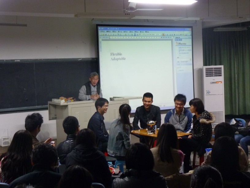 本次脱口秀的主题是学生的校园生活。主要围绕同学们对大学生活的看法;对嘉庚学院的印象和感觉;第一个月的大学生活后对学校新的感想;对自己专业的认识和看法;以及大家是否赞成大学里面恋爱等几个小话题展开。在外教Steve的循循善诱之下,同学们都畅所欲言,积极踊跃发表自己的观点。其中,关于大学生活这一话题,有同学提到上了大学不知道自己要做什么,感到有些迷茫。而在有关大学生恋爱的话题中,有同学认为大学生恋爱是允许的也是必修课。在脱口秀接近尾声时,外教Steve不仅精心筹划了抽奖活动,还特意安排了英文歌曲,有的同学甚至主动上台演唱。整场脱口秀就在这么愉快轻松的氛围下划上了圆满的句号。