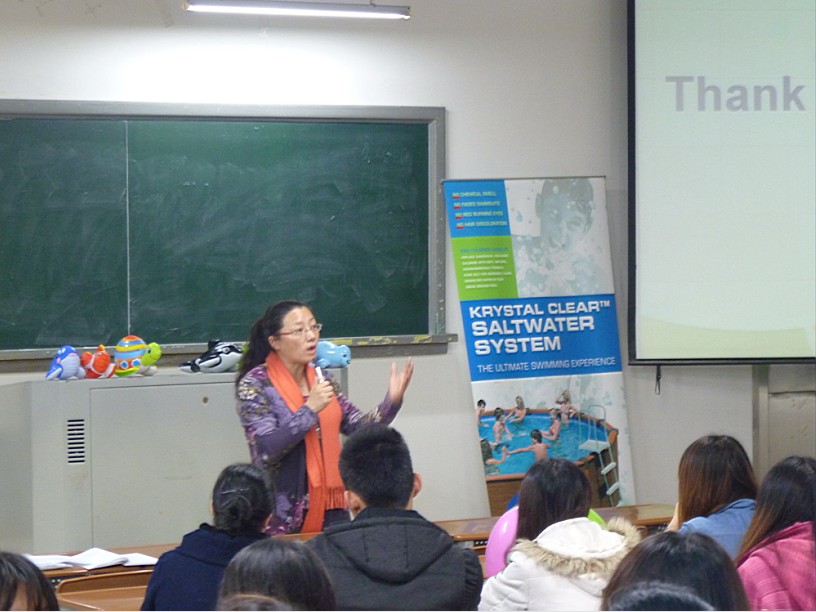 及其他工作人员。通过详细介绍,同学们得知这是一家以生产休闲运动娱乐器材及其配套电子电器为主的公司。我系优秀毕业生首甜甜现任职于该公司,她用