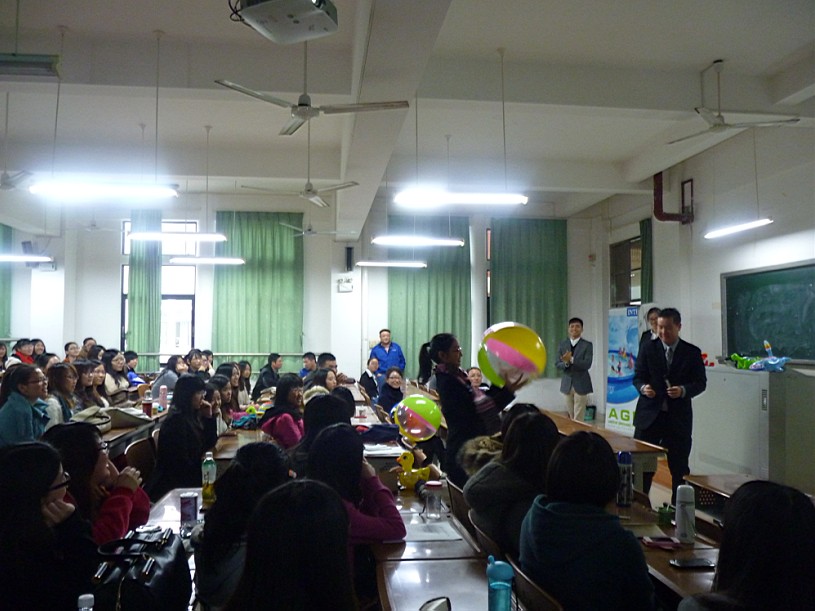 厦门明达实业招聘的宣讲会。介绍对外交流项目的主讲人是