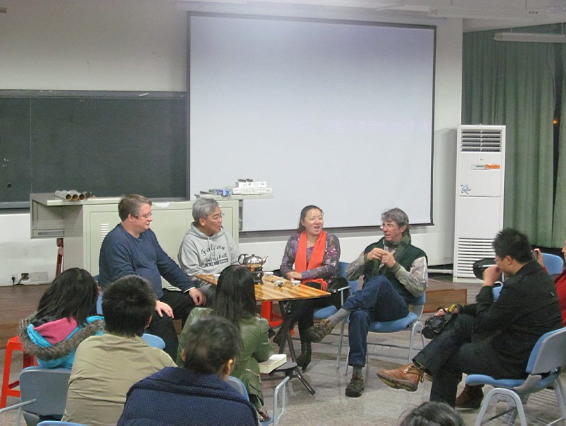 2012年12月27日晚上7:30,英语系外教Steve在经管楼301开展了主题为“peace on earth”(天下太平)的本学期最后一场talk show。此次脱口秀,Steve邀请了外教Change Parker和Bruce Baker,还有英语系执行主任杨昆。