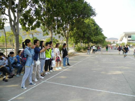 当男生们挥洒着汗水,用矫健的步伐,帅气的身姿在球场上驰骋时,女生也在忘乎所以的呐喊助威,他们欢呼雀跃,为男生们喝彩着。