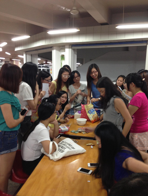 入乡随俗,英语系11(3)班的班委们为了给同学们带来一份温暖和节日的气氛,在9月16日举行了中秋博饼活动。班委们提前一天都超市采购牛奶,马克杯,麦片,笔记本等礼品。16日晚上9点大家齐聚南区食堂开始博饼。博饼进行了三轮,大家其乐融融,非常开心。最终,华晓倩同学博得了状元,获得一箱牛奶。李晴同学和蔡雅娟同学博得了对堂,获得了马克杯。每个同学都有拿到小礼品。