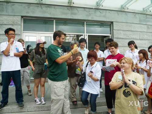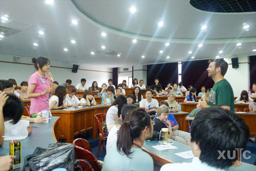 6月11日,英语系与美国中佛罗里达大学口语俱乐部(ACEC,University of Central Florida,U.S.A)举办了English Camp(英语营)活动。 尽管当天上午风雨不期而遇,但这没有阻挡来自美国中佛罗里达大学口语俱乐部的教师和金年会学生沟通交流的热情。英语系学生特地披上“英语系欢迎您”的绶带,迎接来自美国的友人。当天参加此次活动的学生总共55名,不仅有英语系的学生,还有来自电子商务系、电子工程系、国际经贸系等院系的同学。 美国中佛罗里达大学口语俱乐部的老师们将参加活动的学生分成四个小组,在公共教学一号楼的四间教室里同时进行“责任”“信赖”“关怀”“尊重”英语营地趣味主题活动。主题活动旨在启发学生对自身品质与友谊内涵的思考。活动中,同学们通过角色扮演恰当地使用英语语言,提高角色责任感。老师们还与同学们进行了游戏互动,例如把其中一位学生的双眼蒙上,其他学生用英语提供各种提示,让这位蒙住眼睛的同学依据提示找到目的地。游戏环节使活动气氛活跃,教室里传来阵阵欢笑声和掌声。上午的营地活动结束时,美国老师和同学们一起合照,并送给同学们带有佛罗里达标记的球衣、球帽和其他小礼物。 下午,来自美国的老师们为金年会师生做了主题为“真爱五种语言”和“通向成功的秘诀”的讲座。讲座中,美国老师鼓励同学们踊跃提问。讲座结束后,仍有许多同学意犹未尽,与美国老师留下了电子邮箱等联系方式,方便今后进一步交流。 英语系执行主任杨昆表示,这类紧扣主题的新兴语言活动形式为同学们提供了英语学习的机会,开拓了大家的视野。 |