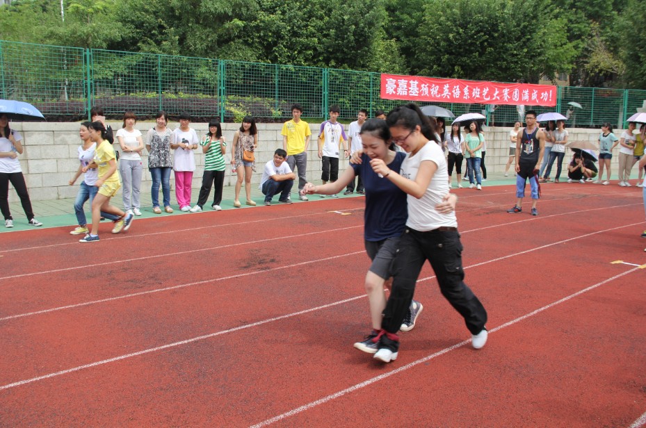 此次体育嘉年华活动包括跳长绳、两人三足绑腿跑、接力跑和拔河,共四项比赛。比赛开始,首先出场的是英语系11级3班,挥绳的同学不敢有丝毫懈怠,跳绳的同学更是全神贯注,努力地跃过绳子。而坐在旁边等待上场的同学,个个摩拳擦掌、跃跃欲试。接下来的两人三足比赛让人感叹不已,参赛的同学们互相搀扶着,或快或慢,抵达终点时,脸上无一不洋溢着灿烂的笑容。而最吸引大家眼球的拔河比赛,悬念迭起。一群看似柔弱的女生却能战胜一路过关斩将闯进半决赛的对手,势均力敌的双方却在最后的几秒内扭转了局面。