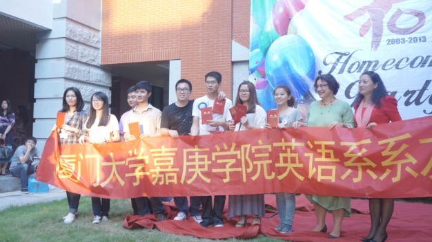系友会成立仪式上,英语系执行主任杨昆为系友会联络员颁发聘书。系友会表示今后要多组织聚会活动,再回“嘉”看看。