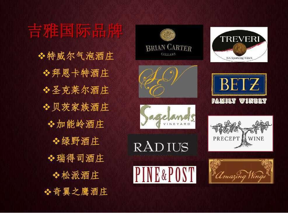 美国吉雅集团厦门西雅嘉进出口有限公司专门从事进口葡萄酒在中国市场的品牌运营与销售。现诚招有信心投入进口葡萄酒事业的销售人员若干名,要求形象好、气质佳、有责任心与亲和力、有沟通力与交际能力!待遇从优!有梦想有自信的你,让我们一同去实现飞跃吧!