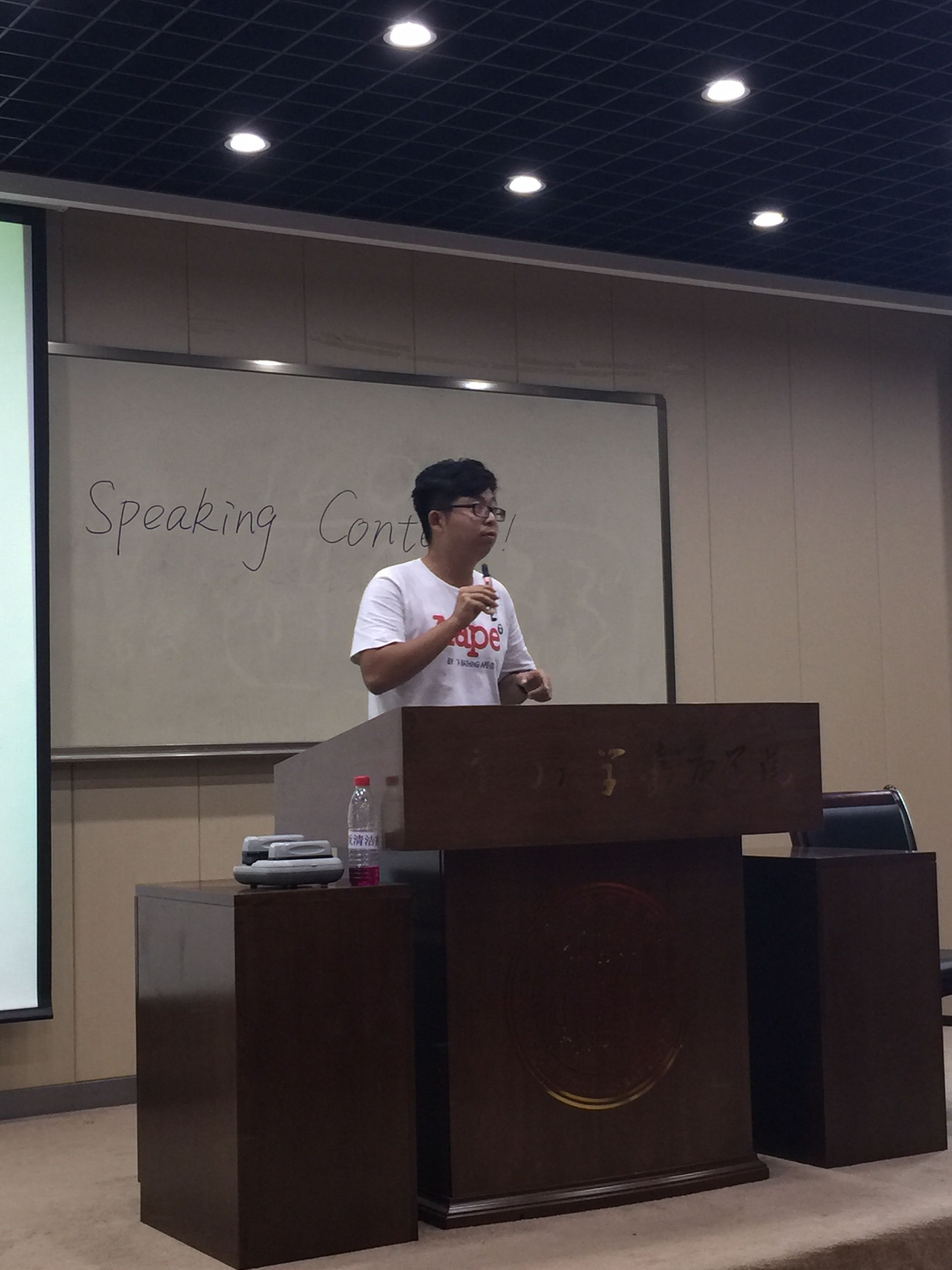 选手们有的热情洋溢地讲述着自己所体验的大学生活,有的阐述着对自己人生道路的看法,对于老师提出的问题,他们也能从容如实地应答,引起了现场观众的多次热烈掌声。在比赛中期,主持人还唱了一首《The Lazy Song》,现场气氛更加轻松活跃。