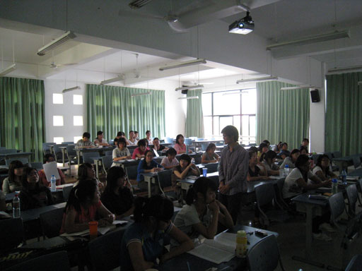 由英语系党支部书记吴健飞为入党积极分子们带来了第一场培训——深入学习科学发展观及时事。