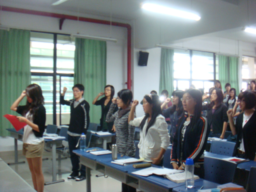 此次会议分三个流程。一是发展英语系第41期12名学生党员以及日语系2名预备党员进行的转正;二是学生党员宣誓;三是介绍英语系学生党支部策划的“涓涓热血,重铸生命辉煌”的主题活动。