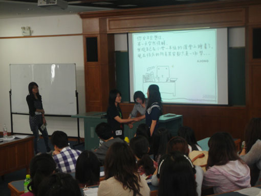 四月十五日中午,英语系同计算机与技术系于公共教学一号楼208室举行了第二期团校汇报演出。