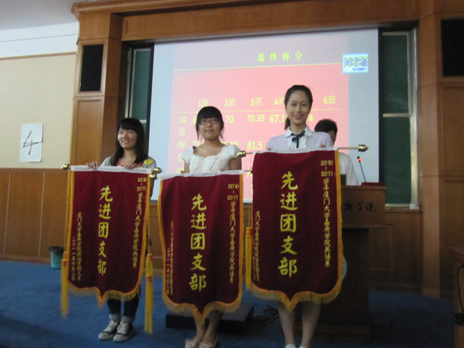 “破茧成蝶”,“凤凰花下”,“一闪一闪小星星”…这一季,我们在集体里收获颇多。最后,10级3班、09级4班以及08级5班以优异的表现和出色的宣讲获得了先进团支部的荣誉,而最佳组织奖则是花落由08级1班、08级3班和09级3班,在一阵阵的掌声与欢呼声中,在场的嘉宾们为获得“两优一先”及最佳组织奖,优秀团员等个人及团体颁奖,此次大会也圆满的落下了帷幕。