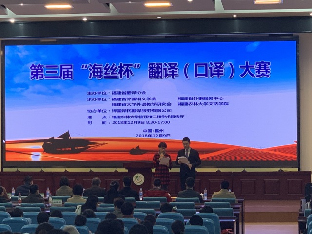 “译国译民”杯海丝翻译大赛由福建省翻译协会主办,福建省大学外语教学研究会、福州大学外国语学院和译国译民翻译服务有限公司联合承办,今年已经是第二届赛事。大赛的宗旨是促进福建省翻译事业繁荣与发展,进一步满足福建作为21世纪海上丝绸之路核心区日益扩大的对外交流需求,营造良好的对外开放语言环境,培养、储备“一带一路”建设所急需的高素质语言服务人才。