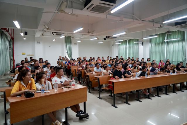 辅导员陈毓榕老师在随后的发言中以“报考嘉庚是明智的选择”为主题,为在座新生家长解读了为什么要学好英语,英语专业的优势等,并用PPT展示了近年来英语系的教研活动成果,以清晰的图表数据展示了英语系整体就业情况,近几年的考研出国情况。发言最后,陈毓榕老师表达了对新生家长的期许,希望能一同助力新生学习成长,在四年大学生活后成为自己想成为的人。