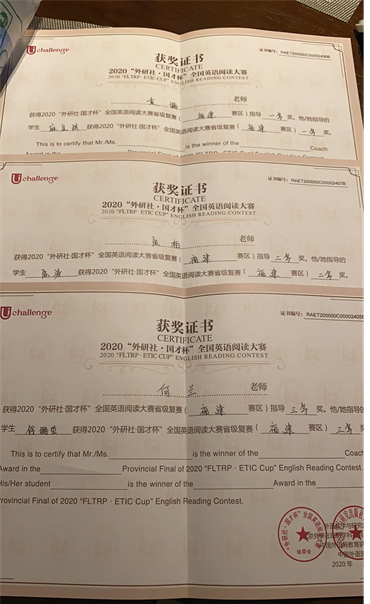 11月7日至8日,2020“外研社·国才杯”全国英语阅读、演讲、写作大赛(福建赛区决赛)在福州工商学院举行,我校金年会jinnianhuicom教师何兰、林杨琼和官晓勤分别带领阅读比赛、演讲比赛、写作比赛三支学生队伍参赛,共获得8个奖项。其中一等奖1项、二等奖4项、三等奖3项。