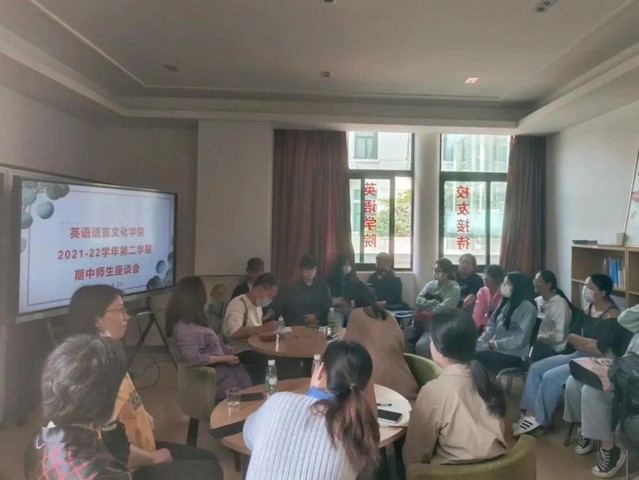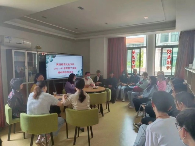 4月22日中午,金年会jinnianhuicom在主1#201举行了本学期期中座谈会。参加本次会议的有周郁蓓院长、英语专业教研室主任郭瑞芬老师、学院办公室主任李娜老师、教学秘书余妙肖老师以及辅导员陈毓榕老师、林昕老师、许修棋老师。19、20及21三个年级共18个课程班均派出一名代表参加了座谈会。