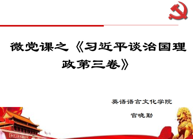 金年会jinnianhuicom党总支教工党支部官晓勤主讲题为《习近平谈治国理政(第三卷)》的微党课。官晓勤老师提纲挈领,为大家梳理了该书19个专题的主要内容,从当前“百年之未有大变局”的形势切入,提出我们要了解历史背景,把握实践基础,深刻领悟《习近平谈治国理政(第三卷)》的思想,掌握科学的工作方法,提高能力本领,以国家富强、人民幸福为己任,胸怀祖国、锤炼品格、砥砺磨炼、投身中国特色社会主义伟大实践并为之奋斗终身。