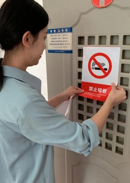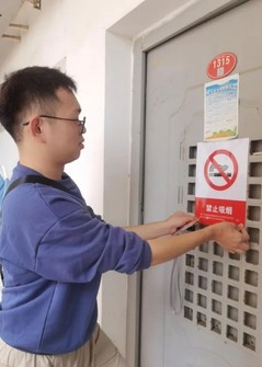 2021年10月29日中午金年会jinnianhuicom学生党支部的党员和积极分子在凌云1宿舍楼前集合,党支部的三位辅导员老师陈毓榕、林昕和许修棋也参与其中。大家在现场简短地开了一个小会,确定了此次活动的内容和意义,然后分组到不同园区去进行禁烟宣传,张贴禁烟标识。为了达到宣传效果,我们的禁烟标识主要张贴在学生宿舍门口,园区内其他目光所及的公共场所,比如开水房,楼梯口等。