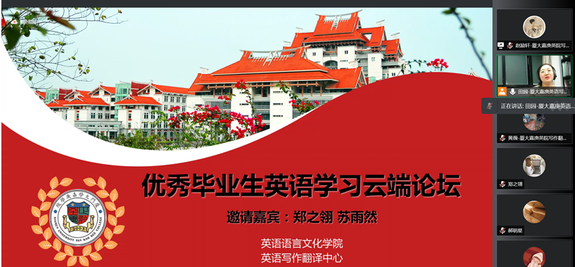 作为嘉庚学子,郑之翎和苏雨然在英院老师们的培养下和自己的努力下,都实现了进一步深造学习的目标,目前郑之翎同学已被四川外国语大学英语语言文学专业录取,苏雨然同学目前就读于英国南安普顿大学TESOL专业。她们的成长历程和求学经历,对还处于迷茫和奋斗中的学弟学妹们有很好的借鉴意义。