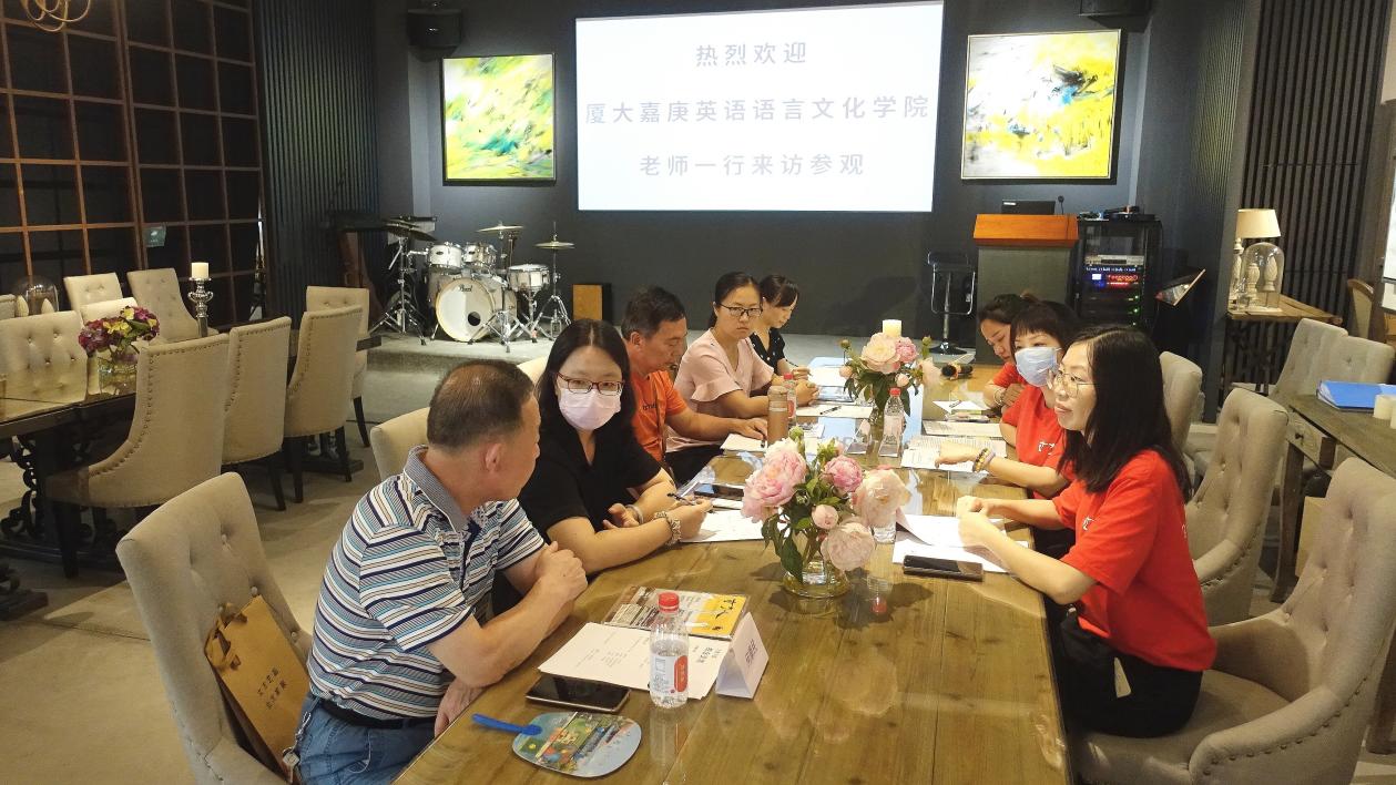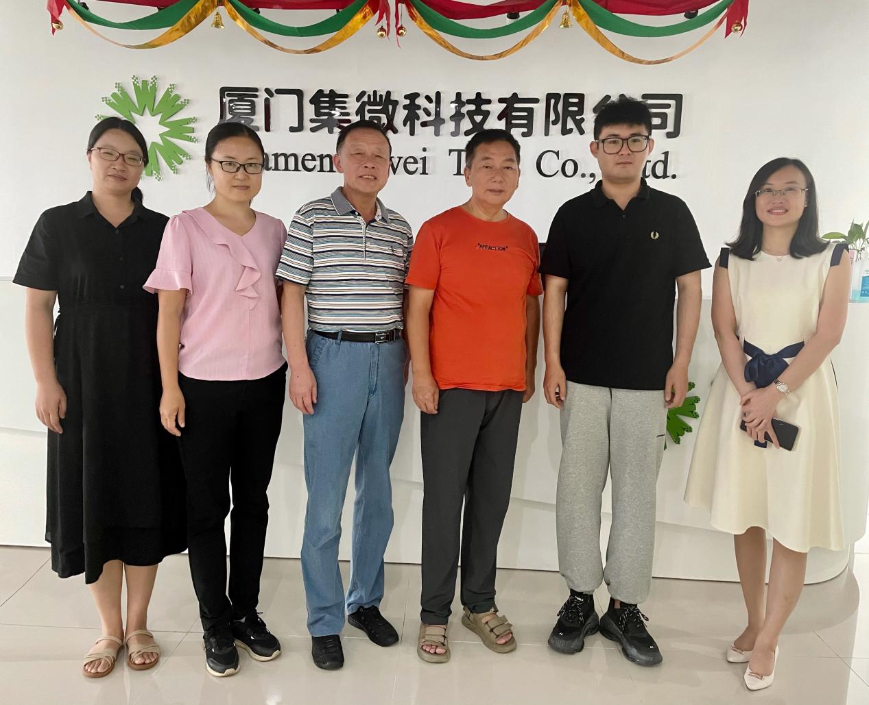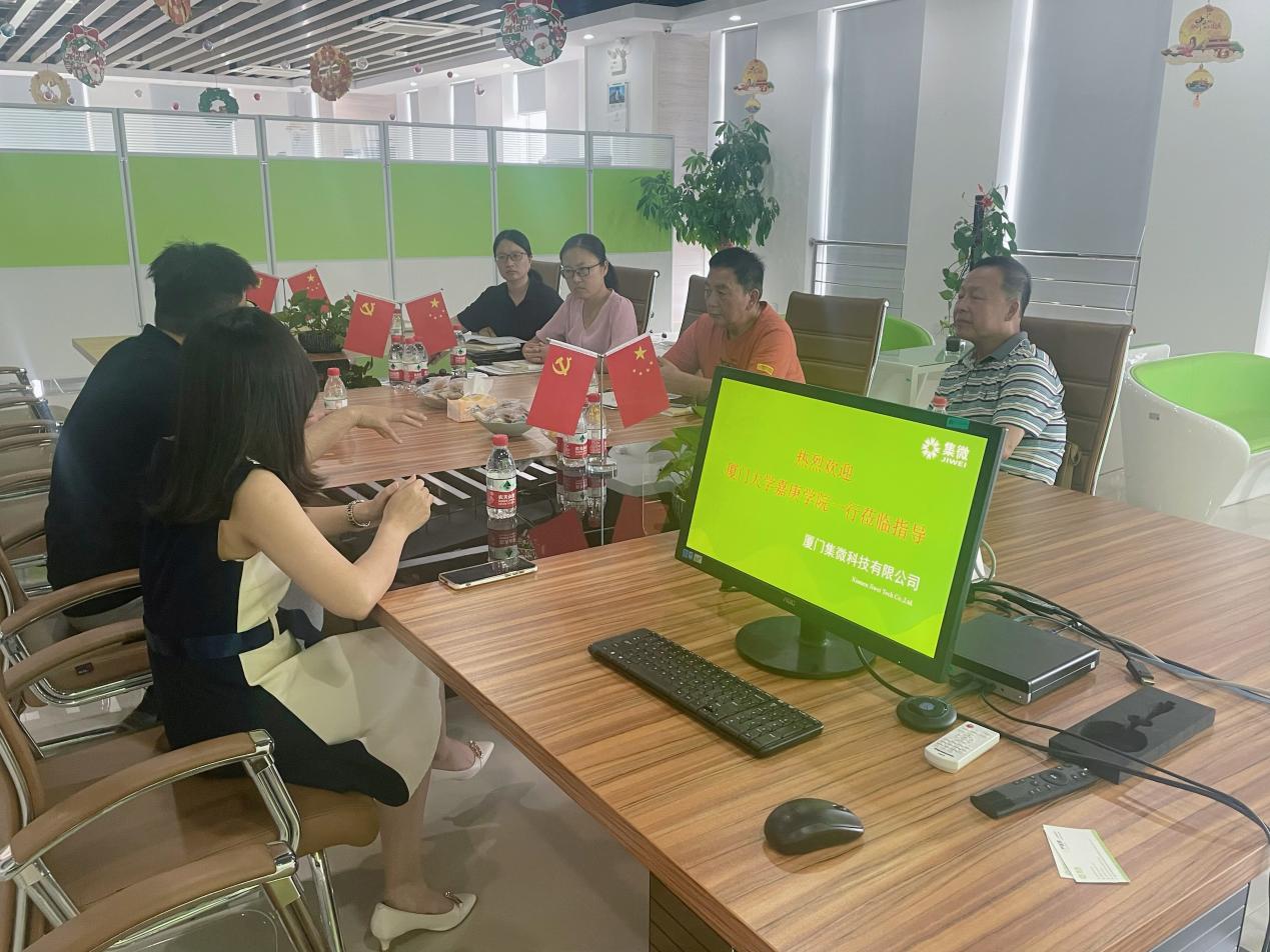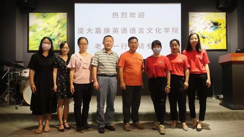 2022年7月1日,金年会jinnianhuicom党支部书记梅家象,院长助理蔡秀星,英语专业教研室主任郭瑞芬,英语专业教师何康民、王小慧一行五人走访了厦门立方艺品有限公司、厦门亿学软件有限公司和厦门集微科技有限公司,与企业就建立实习合作与三创基地、实习生培训、产学研合作等问题进行了深入的讨论。