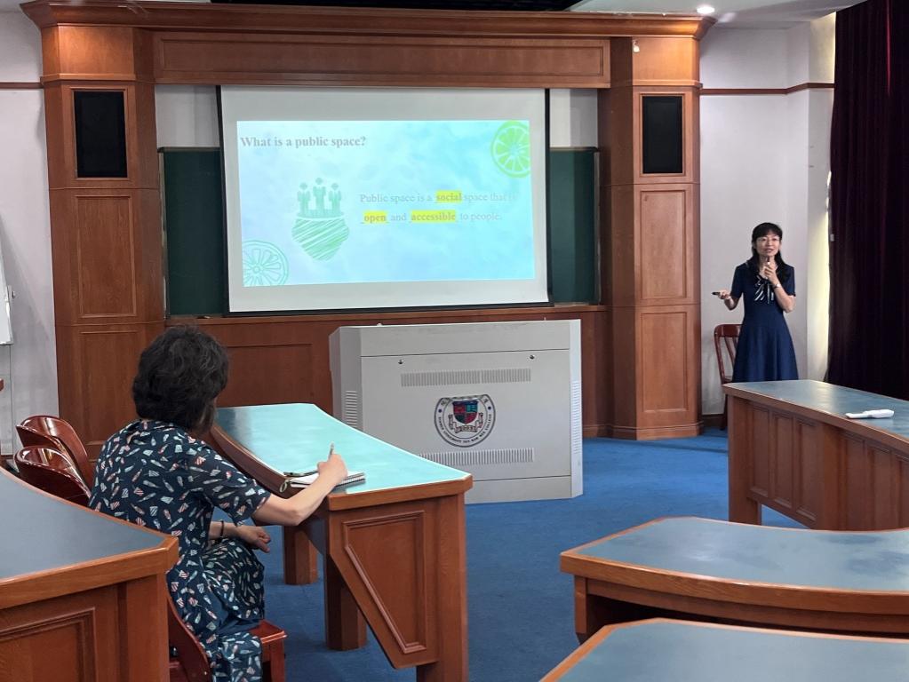 黄丽香老师将说课与授课相结合,完整地展示了视听说课片段Public Space and the Livable City,她由中国福州和西班牙的一组图片导入话题通过学生所熟悉的公共空间来探讨公共空间的概念以及它与宜居城市的关系,具有在地性,也具有跨文化性,授课过程流畅,讲练结合,有一定互动,视听结合有效地实现课堂教学。