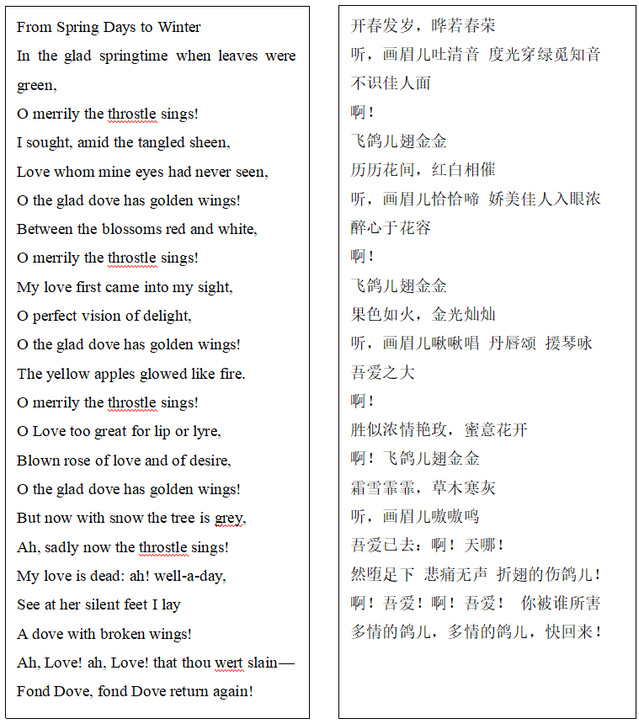 原诗:“oh merrily the throstle sings”被重复,(反复(repetition)的修辞)