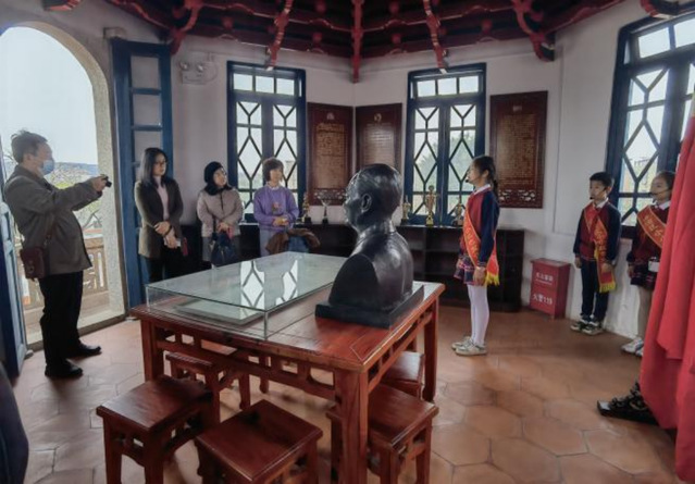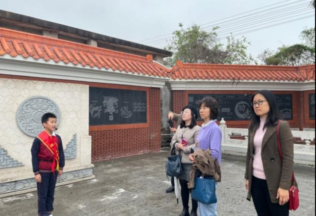 仪式开始前,校长林明全和副校长吴永发带领大家来到了海沧中心小学的校史馆——奎星楼前。楼分两层,楼上楼下前后门的门楣上,嵌着同治甲子年间重修时题刻的横石匾,一写“鳌头拱秀”,一写“联步登云”。接着,三位可爱的小学生代表分别为大家介绍了奎星楼的历史,讲述了当年革命火种是如何在这里点燃滋养着一代又一代人。奎星楼不仅是沧江人民的抗战历史的见证,也是沧江古镇宝贵的遗产。