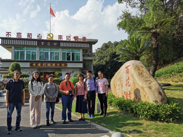 漳州市委办驻百花村第一书记戴保全和校友也是百花村文书朱艺勇热情地接待了我们,向我们介绍了百花村的历史变迁和如今的飞速发展,陪同我们参观了百花村党建引领展示馆。